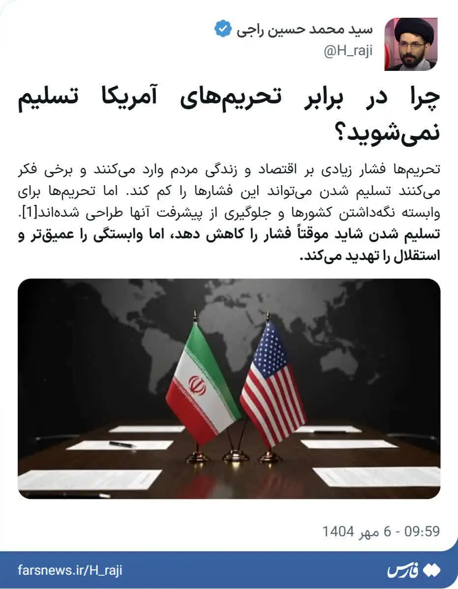 پیروز نهایی این جنگ ایران است و پایان این جنگ، آغاز نظم منطقهای و حتی جهانی جدیدی است که فرصتهای سیاسی و اقتصادی آن برای پیشرفت ایران قابلمقایسه با قبل از این جنگ نخواهد بود.