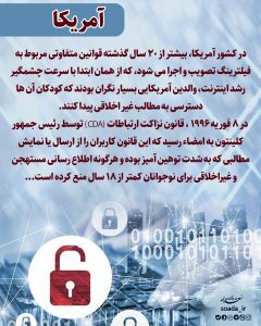 در کشور آمریکا، بیشتر از 20 سال گذشته قوانین متفاوتی مربوط به فیلترینگ تصویب و اجرا می شود، که از همان ابتدا با سرعت چشمگیر رشد اینترنت، والدین آمریکایی بسیار نگران بودند که کودکان آن ها دسترسی به مطالب غیر اخلاقی پیدا کنند.