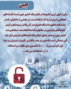 یکی از قوی ترین کشورها در فیلترینگ کشور چین است که راه های مختلفی را برای آن به کار گرفته است، در بخشی از تحقیقی که در دانشکده حقوق دانشگاه هاروارد در آمریکا در زمینه فیلتر کردن تارنماهای اینترنتی در سالهای گذشته انجام شد، مشخص شد کشور چین در صدر جدول فیلترینگ تارنماهای اینترنتی قرار دارد این در حالی است که چین در صدر بالاترین کاربران اینترنتی در دنیا قرار دارد و بیش از 50،000 تکنسین برای نظارت بر استفاده از آن استخدام می کند[2]